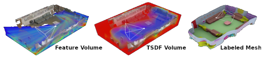 먼저, RGB Image에서 2D CNN을 통해 Features를 추출하고 이를 Back Project을 통해 3D Feature Volume을 생성한다. 이를 3D CNN을 통해 TSDF Volume으로 재생성한다.