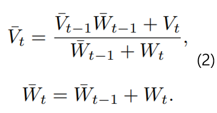 먼저 입력인 시퀀스 이미지를 Backbone Netwokr (2D CNN) 을 통과시켜, 2D Feature를 추출한다. 이후 보유하고 있는 Camera Parameters, Pose와 2D Feature와 수식(1)을 활용하여 World Space의 Voxle 좌표를 구하는 Back Projection을 진행한다. 이를 통해 3D Voxel Volume을 얻을 수 있다. 이러한 Volume은 모든 Sequnce에서 TSDF Fusion과 유사하게 Weighted Average-수식 (2)을 통해 축적되어 하나의 Volume을 얻을 수 있다.